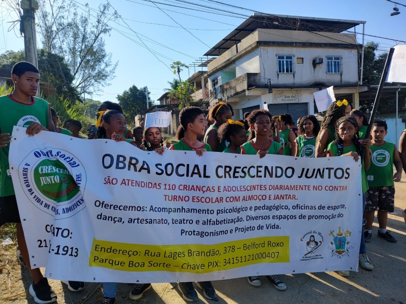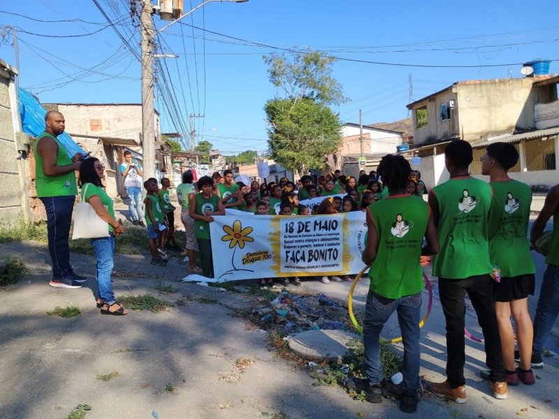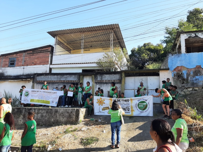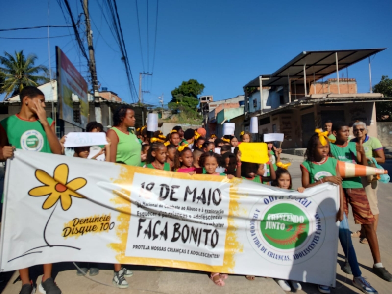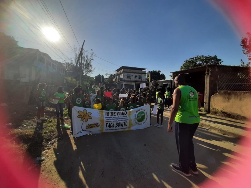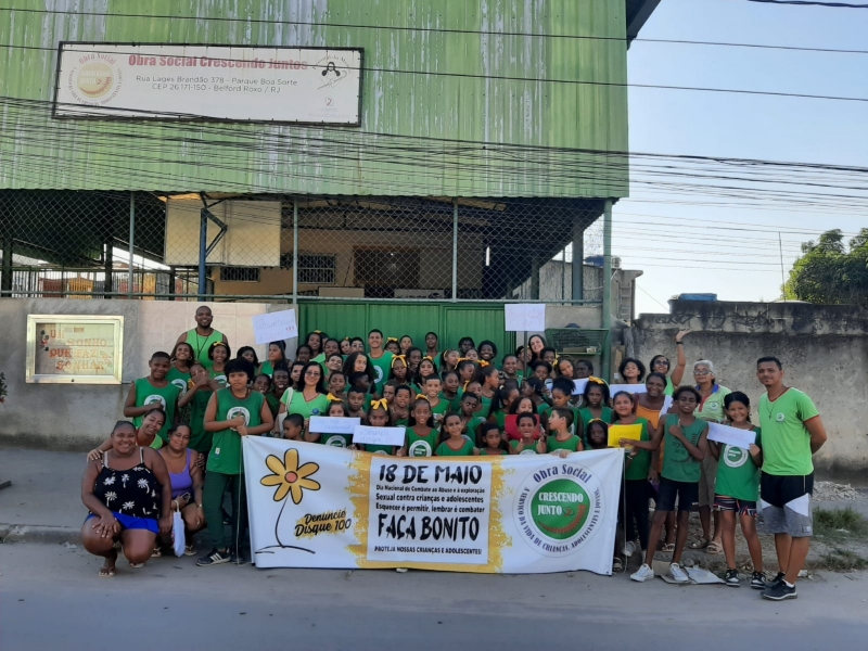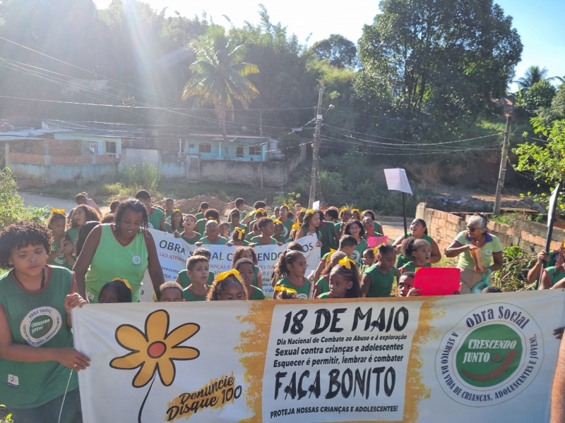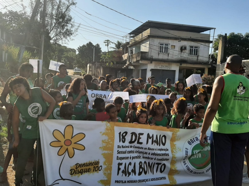 18 de Maio, “Dia Nacional de Combate ao Abuso e à Exploração Sexual de Crianças e Adolescentes”. Instituída pela Lei Federal 9.970/00, a data é uma conquista que demarca a luta pelos Direitos Humanos de Crianças e Adolescentes no território brasileiro. No dia 17/05 na parte da tarde realizamos nossa caminhada, foi uma momento muito significativo. Reflexões e muita esperança de um mundo onde todos vão cuidar e proteger nossas crianças e adolescentes. Durante todo percurso foram realizados gritos de vida, frases de conscientização, homenagem aos 24 anos da Obra Social e 26 anos de presença das Filhas de Maria Auxiliadora no território, homenagem aos educadores e principalmente a relevância do tema, todos juntos protegendo crianças e adolescentes.
