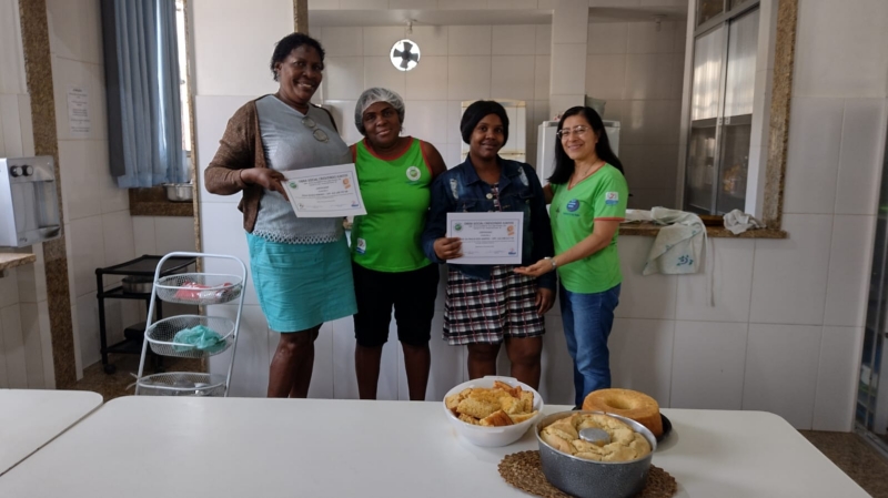 Com a supervisão da cozinheira Lucineth, foi encerrado o curso de pães e bolos realizado na Obra Social Crescendo Juntos. Uma baita alegria ter iniciado com a Parceria do Centro dos Direitos Humanos de Nova Iguaçu.