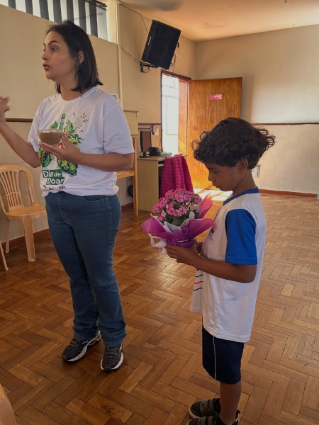 Dia 1 de outubro - Na acolhida de hoje refletimos sobre a terra e a flor. Plantamos, cuidamos, regamos… tudo na medida certa. E colhemos flores lindas. Assim também é a nossa vida: no coração plantamos coisas boas, regamos com carinho e cuidado para que nasçam sentimentos lindos e possamos enfeitar a vida dos outros com amor.