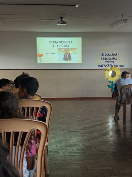 Na acolhida do dia 06 de outubro, a educadora Vanessa nos presenteou com uma linda reflexão sobre Nossa Senhora Aparecida. Em 12 de outubro celebramos o dia da Padroeira do Brasil e recordamos sua história tão especial, pedindo que ela continue abençoando nosso país e nossas famílias.