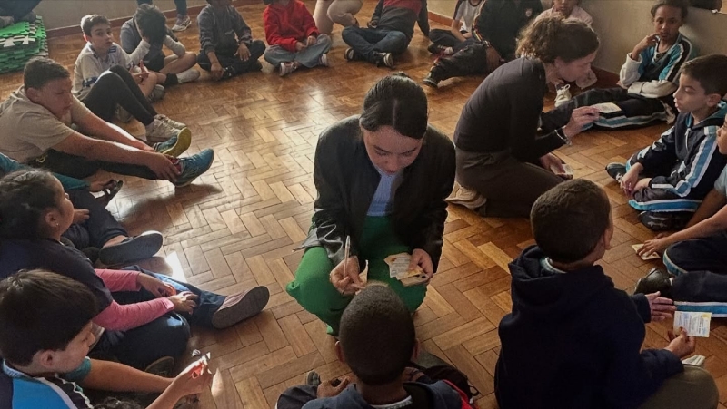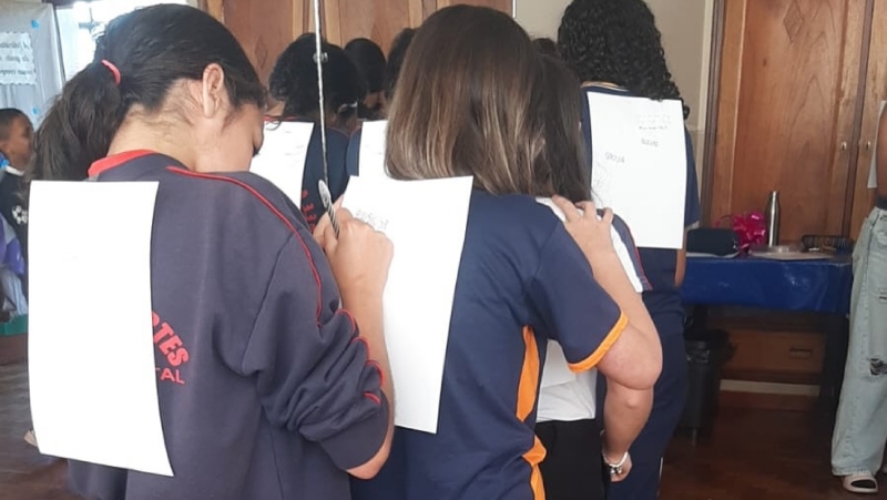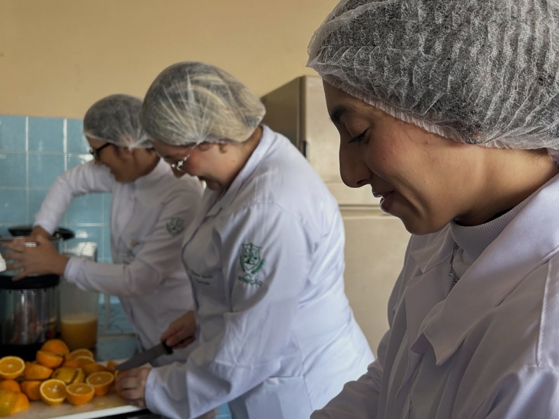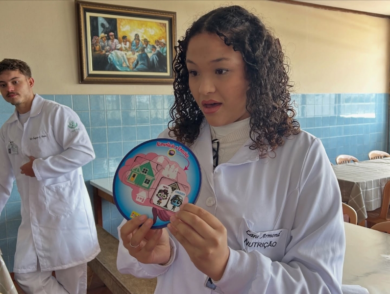 Dia 22 de outubro - Dia de Projeto de Extensão, as turmas participaram de uma experiência deliciosa e cheia de aprendizado! As crianças e adolescentes das turmas Paz e Solidariedade experimentaram suco natural e suco industrial com os olhos vendados e tentaram adivinhar qual era cada um - uma dinâmica divertida e educativa sobre sabores e escolhas saudáveis. Já as turmas Alegria e Gratidão participaram de uma atividade com cartinhas e perguntas sobre alimentação, estimulando a reflexão e o conhecimento. Para finalizar com chave de ouro, saborearam um bolo nutritivo preparado com muito carinho pelos acadêmicos de Nutrição.