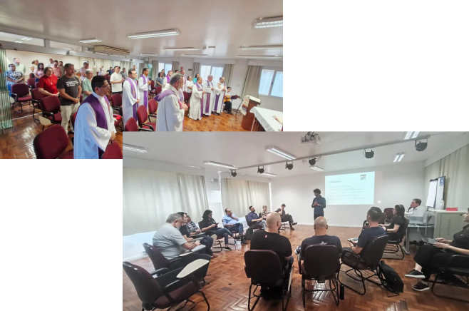 A abertura do encontro foi marcada por um forte sentido de comunhão carismática. A Inspetora Ir. Alaíde Deretti ressaltou que a união entre salesianos e salesianas é um sinal significativo para o mundo. Reforçando essa visão, o Diretor-Presidente da RSB, P. Ricardo Carlos, utilizou uma metáfora marcante ao definir o grupo reunido: “Aqui está a locomotiva da RSB. É esta locomotiva que puxa os demais vagões, todos direcionados a um objetivo comum, trabalhando com espírito de partilha, convivência fraterna e alegria autenticamente salesiana”.
