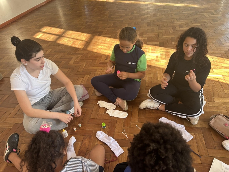 Vivemos momentos mágicos com atividades criativas: meia maluca, desfile de moda, desenhos, pinturas e muita expressão artística.